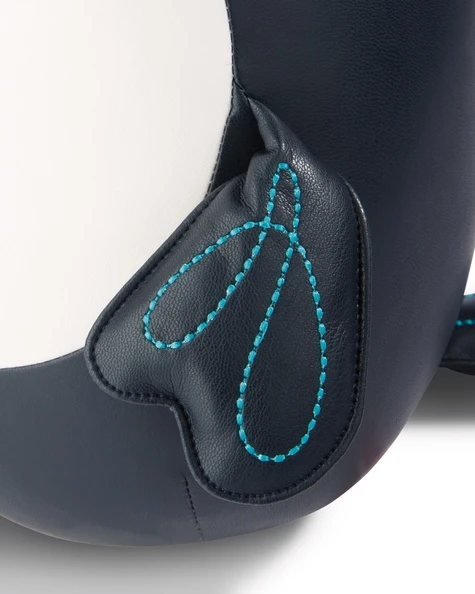 Besonders detailverliebt sind seine Flügel und der Tukanschwanz gestaltet. Hier setzt eine türkise Bestickung echte Akzente.